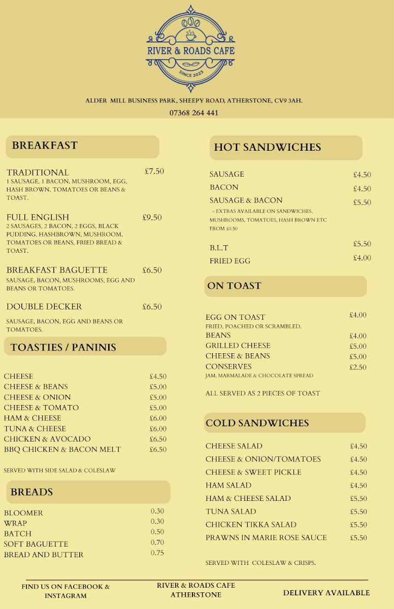 Welcome to River & Roads Cafe, a charming spot nestled in Atherstone’s Alder Mill Business Park. Known for its inviting atmosphere and community spirit, this cafe shines brightly in the local dining scene.
